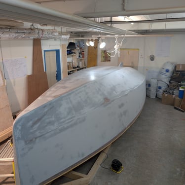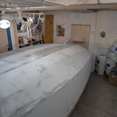 A fully sanded hull and some fresh primer