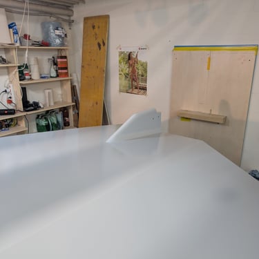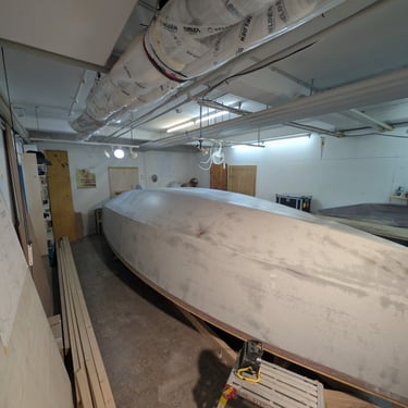The purpose of these layers is to build up the strength and thickness of the protective coating since the hull was already perfectly fair. Applying these layers made for a tough week, as I started on a Sunday afternoon.