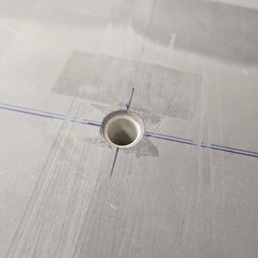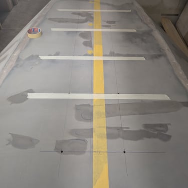 While mounting the skeg, I also decided to tackle the keel bolts. The centerline of the boat had already been marked with a laser level and tape earlier in the build process. On the interior, I carried the centerline mark throughout and had already marked the locations for the keel bolts when installing the keel floors.