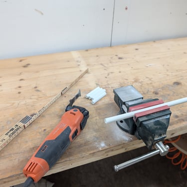 Next, I prepared the fiberglass tubes to line the holes. These tubes, with a 12 mm inner diameter and a 14 mm outer diameter, were sanded lightly on the outside and cut to equal lengths using a fine tool. Adding these tubes is essential for several reasons: class rules require regular checks of the keel bolts, and the tubes make removal easier while preventing any water ingress from seeping into the timber structure.