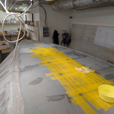 To install the tubes, I first taped off the holes on the inside and masked the top surface around the holes. Then, I filled the holes with epoxy resin, allowing it to sit briefly so air bubbles could rise and the surrounding wood could fully saturate. Once this was done, I inserted the fiberglass tubes, ensuring a solid, bubble-free bond around them.