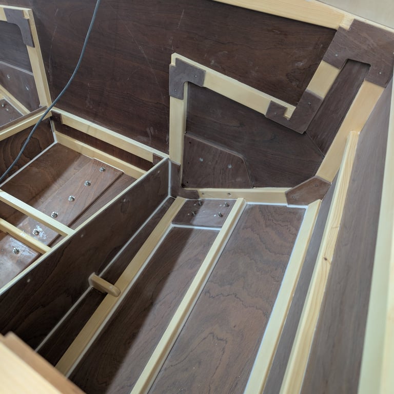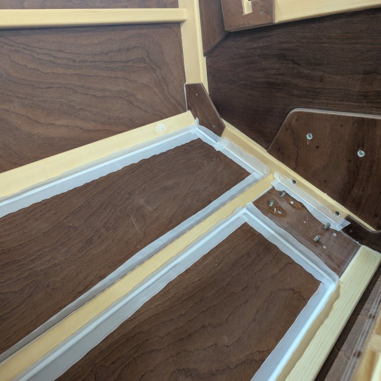 From a technical perspective, fillets are only strictly necessary where plywood parts meet in butt joints. In those areas, fillets provide the required strength to prevent the joints from cracking or loosening when the boat is under load. In my build, this mainly applied to the cabin bunk risers and the compartment sides behind frame A in the aft section.