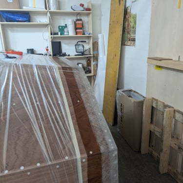 Its the end of July and finally the summer had arrived, not quiet Ideal for me, but since my shop is in a basement, I could manage the temperatures. I used West System epoxy with the slow hardener. The temperatures were usually around 21°C in the morning and roughly 25° by late afternoon.
