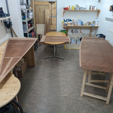 Since there are two bottom layers I chose to build them with butt joints and doublers on the inside. For the bow piece I was able to use the scraps of the transom plating which reached just behind frame D'. Perfect since that is where I will be housing my batteries. I made the inside doubler so wide, so that it would stretch to the next floor timber. The Next joint I placed just in front of frame A. For the most aft piece, I glued on the inner backing plate for the skeg. Both of the doublers were glued to the middle piece, so that's the one that will go on first.