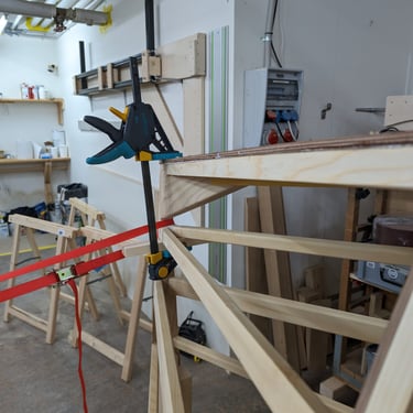 A friend of mine came and helped me out with the glueing part. With everything prepared, the 3 plates went on within a view hours. The remainder of the day, and pretty much as long as the epoxy would allow me, I spent cleaning up the glue joints.