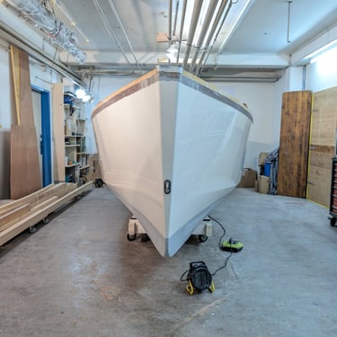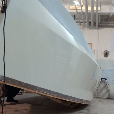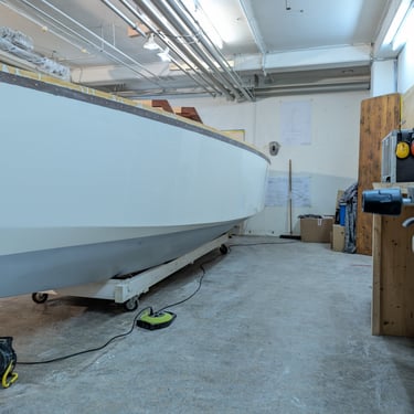 I started the New Year 2025 by turning the hull. I wanted to replicate the method used by Christian Sauer (Hull #103), which I believe I saw on Facebook. The idea was to create two attachment points, one at the bow and one at the stern, to hoist and then rotate the boat.